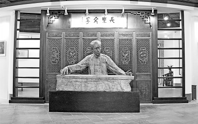 錢(qián)仲聯(lián)先生是學(xué)者,以研究古代詩(shī)詞著稱,尤其清詩(shī)研究,是中國(guó)最高權(quán)威。錢(qián)先生研究古代文學(xué),不僅能夠旁征博引,發(fā)人所未發(fā),更重要的是所有古代文學(xué)形式詩(shī)、詞、駢體文,錢(qián)先生都能如同古人一樣進(jìn)行創(chuàng)作。錢(qián)先生是1981年國(guó)家首批博導(dǎo),學(xué)界不僅重視他的學(xué)術(shù)成就,同時(shí)崇敬他的詩(shī)人身份。王元化稱錢(qián)先生為“一代詩(shī)豪”,深得學(xué)界贊同。那么,一位每天沉浸在古典世界的學(xué)者,應(yīng)該怎樣雕塑呢?紀(jì)峰創(chuàng)作的錢(qián)仲聯(lián)先生銅像是座半身像,我以為可以稱作“思想者錢(qián)仲聯(lián)”。錢(qián)先生緊閉雙唇,雙目微微下視,凝視不動(dòng)。寧?kù)o的表情,頭腦里卻在翻江倒海,風(fēng)云變幻。雖然面對(duì)的只是三尺書(shū)桌,但思想的深處,卻是上下五千年,縱橫八萬(wàn)里。這是學(xué)者的獨(dú)特世界,平靜的海面平衡著深海的波濤洶涌。錢(qián)先生非常喜歡這座雕塑,臨睡前要用一方毛巾蓋上,說(shuō)該休息了。早上,進(jìn)入書(shū)房的第一件事,就是拿掉毛巾,說(shuō)該看書(shū)了。錢(qián)仲聯(lián)先生的最后歲月里,這件雕像成了他的工作同伴。