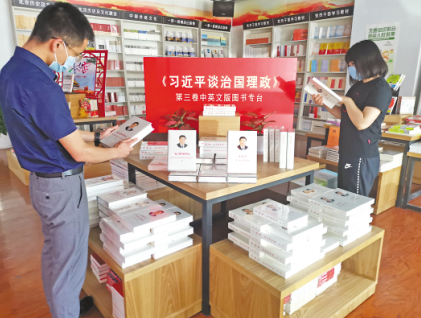 月30日,《習近平談治國理政》第三卷中英文版在全國各大書店開始銷售。圖為讀者在北京中關村圖書大廈選購圖書。