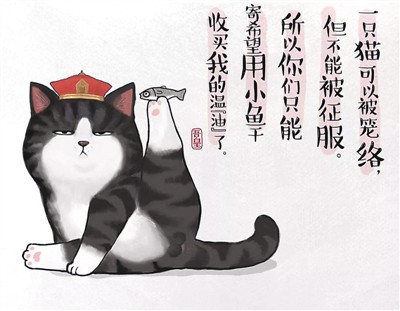 百萬級漫畫作品《就喜歡你看不慣我又干不掉我的樣子》(簡稱“喜干”)的作者白茶,甚至被稱為“社交媒體時代的豐子愷”。主人公吾皇、巴扎黑、少年、牛能是最先走進(jìn)讀者心里的“喜干元素”,在這些“貓貓狗狗”身上,國畫元素與現(xiàn)代漫畫表達(dá)完美融合,所有場景都有種基于國風(fēng)的“都市范兒”,好像一個小爪子就能撓進(jìn)你心,頗有“以古鑒今”的調(diào)調(diào)。書名本身就顯示了一種當(dāng)代人對待世界的態(tài)度,用微小而“獨(dú)一無二”的自我和世界互動。經(jīng)典語錄如“無法改變的,學(xué)會去享受”“遇事冷靜,臉小三分”“既然彼此彼此,何不放過彼此”,疫情期間,狗狗巴扎黑更是定下了“自己遛自己”的計(jì)劃,暖心的畫面令讀者愛不釋手。