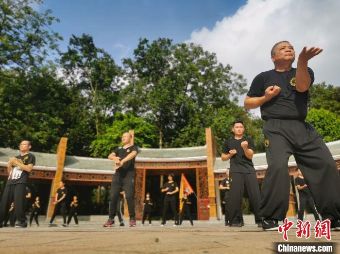 佛山市政府今年印發(fā)了《佛山市加快建設(shè)“世界功夫之城”實施方案》,各區(qū)大力推進(jìn)武術(shù)發(fā)展平臺建設(shè),圖為當(dāng)?shù)靥厣?ldquo;廣場武”?!?yīng)妮 攝