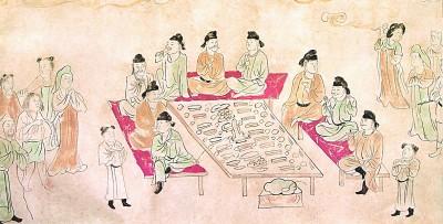 郊野聚飲圖 選自陜西旅游出版社1996年出版的《大唐壁畫》