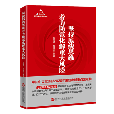 《堅持底線思維著力防范化解重大風(fēng)險》是該系列叢書的總論,由中央黨校(國家行政學(xué)院)副校長應(yīng)急管理培訓(xùn)中心(中歐應(yīng)急管理學(xué)院)主任(院長)馬寶成等合作撰寫,現(xiàn)已由國家行政管理出版社正式出版發(fā)行。