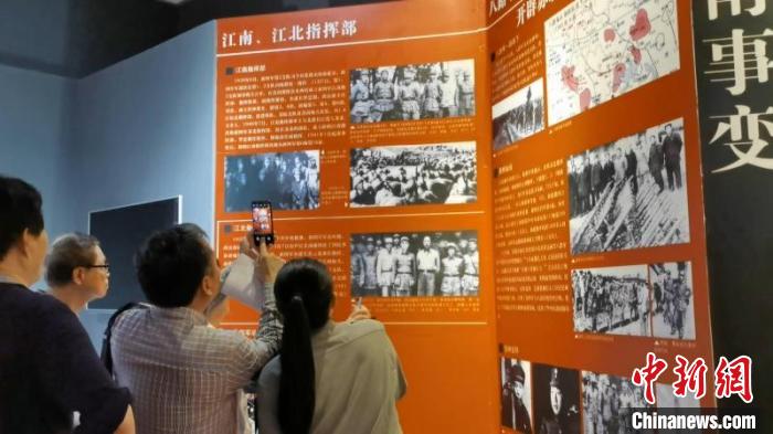 現(xiàn)場采風(fēng)的作家和新四軍后代代表一行參觀新四軍軍部紀(jì)念館?!〉页棵?nbsp;攝