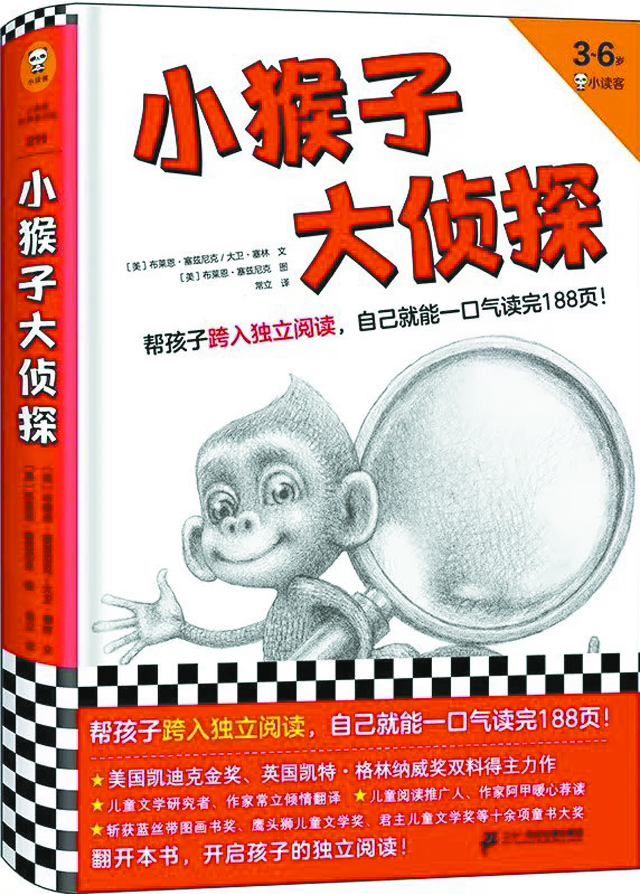 《小猴子大偵探》是本“欺騙性”很強的書,第一次讀到時,我真的被騙到了!聽說是《造夢的雨果》作者的新作,我完全沒理會這本書的介紹,就迫不及待地翻開來。好家伙,共有5章,差不多200頁,我心想,總得一兩個小時才能讀完吧。正當(dāng)我擺開架勢,準(zhǔn)備好好享受童書鬼才塞茲尼克和塞林的新作時,翻著翻著,大概六七分鐘吧,嗯——居然就翻到了最后一頁!天哪,我當(dāng)時想,這是怎樣的一本書?。〔粚?,這真的是一本書嗎?