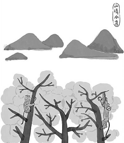 《猴兒與少年》中的“猴兒大學士三少爺”是王蒙貢獻給文壇的一個生動有趣的藝術形象,從生物學、生態(tài)學、生命學的意義上,王蒙寫活了“猴兒性”。猴兒三少的伶俐機智、閃轉騰挪,自由自在自如自安自鬧自玩,不怕人、不服人、不討好于人的獨特“個性”,給人留下深刻印象,特別是對猴兒哥二叔耍猴兒、“三少爺照鏡子”的描寫,簡直妙絕——左照右看,東抓西撓,前伸后縮,急躁狂亂,猴態(tài)百出。從耍猴兒的角度看,實在趣味盎然。