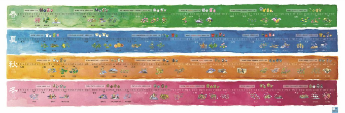 每一個節(jié)氣再劃分為三候……這三候分別以幾個字的形容,分成初中末三段對應置入年歷中,文字中可感受到早年中國黃河流域的景物。