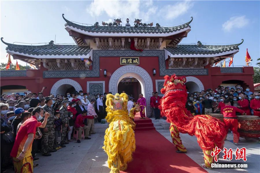 2020年12月,海南瓊海,民眾在城隍廟前舉行回火安座慶典。中新社發(fā) 蒙鐘德 攝