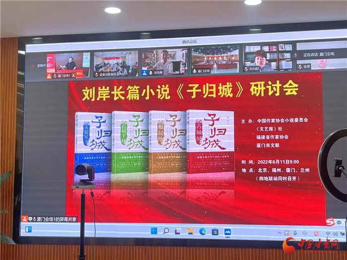 中國甘肅網(wǎng)6月12日訊 (本網(wǎng)記者 張?zhí)m琴)作為敦煌文藝出版社目前出版的“重量級”圖書,劉岸長篇小說《子歸城》受到國內(nèi)各領(lǐng)域關(guān)注和好評。6月11上午,劉岸長篇小說《子歸城》研討會在北京、福州、蘭州、廈門四地,以線上線下聯(lián)動的方式舉行。