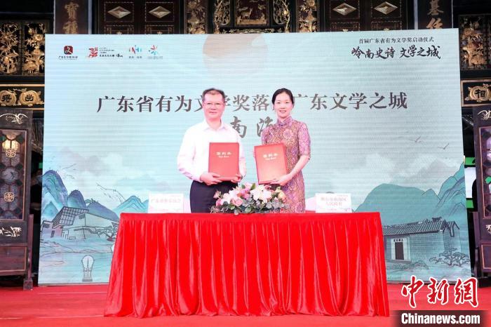 廣東省有為文學獎是繼廣東省魯迅文學藝術獎(文學類)之后,廣東文學界推出的專門針對文學類作品評選的又一重磅大獎,每兩年舉行一屆。啟動儀式上,廣東省作家協會和佛山市南海區(qū)人民政府的代表在協議書上簽字,宣告該獎永久落戶佛山南海。