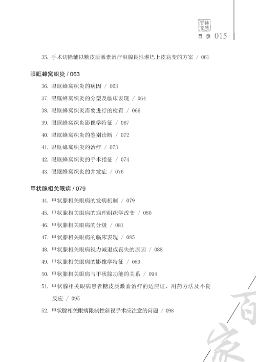 全書主要介紹了常見眼眶炎性疾病及甲狀腺相關(guān)眼病,從病因、病理、臨床表現(xiàn)、輔助檢查、診斷、鑒別診斷、治療及預(yù)后等多個方面對其加以敘述。本書條理清晰,簡明扼要,理論性強,有較強的臨床實用性和指導(dǎo)意義。