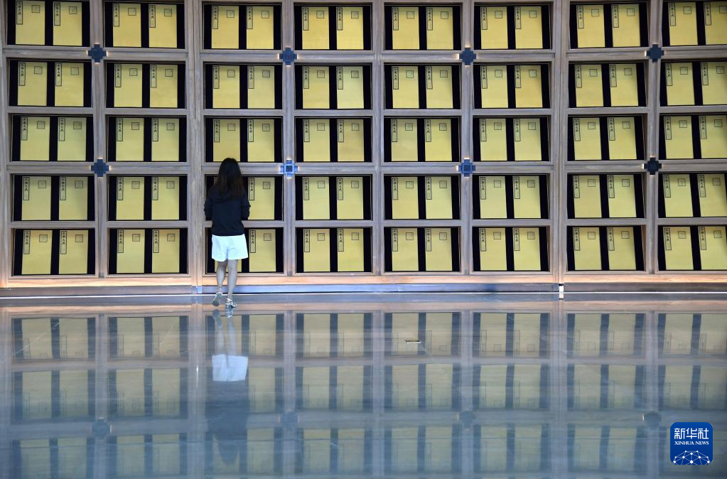 這是在北京拍攝的中國國家版本館中央總館內(nèi)的展覽陳設(7月23日攝)。