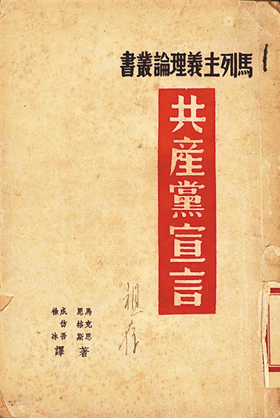 陜北公學(xué)首任校長成仿吾曾在法國和德國學(xué)習(xí)馬克思主義理論,并受中共駐共產(chǎn)國際代表蔡和森委托,翻譯《共產(chǎn)黨宣言》。盡管這部譯稿遺失,卻奠定了他五譯《共產(chǎn)黨宣言》的基礎(chǔ)。人大圖書館收藏了其中3個(gè)刊發(fā)本,包括初印版。其中的二譯本,是受中共中央宣傳部委托,在解放區(qū)公開組織翻譯的第一個(gè)漢語全譯本??箲?zhàn)期間,該譯本是黨員干部的必讀書籍,也是陜北公學(xué)馬列課程的必備教材。