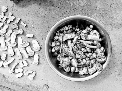 在縣城唯一的山珍市場內(nèi),專營蘑菇的個體戶不急不躁地守著攤位,面前是一堆堆清早收購來的散發(fā)著泥土芬芳的各色蘑菇……專程趕來的當?shù)厥晨突蚺紶柭愤^的外地游客,看著如此新鮮的蘑菇,都會買上個十斤八斤,回去后用保鮮袋分裝在冰箱里隨吃隨拿,或者曬成干蘑菇吃得長久些。個頭大的切成薄片,晾曬在水泥地上;個頭小的用線串成串兒,掛在太陽下暴曬,幾天就好——若遇到陰天,也可以掛在爐火上熏烤。干蘑菇把山野里的芳香氣息集于一身,可謂一種脫俗的山珍野味,無論用來招待客人,還是捎帶給遠方的親友,都是非常不錯的選擇。