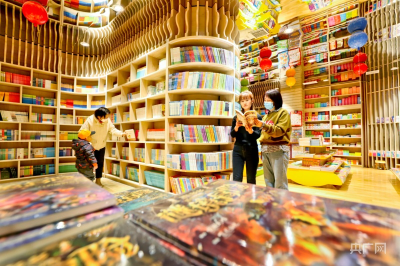 1月23日,市民帶著孩子在甘肅張掖錦華書城讀書、選書、購(gòu)書。(央廣網(wǎng)發(fā) 王將 攝)