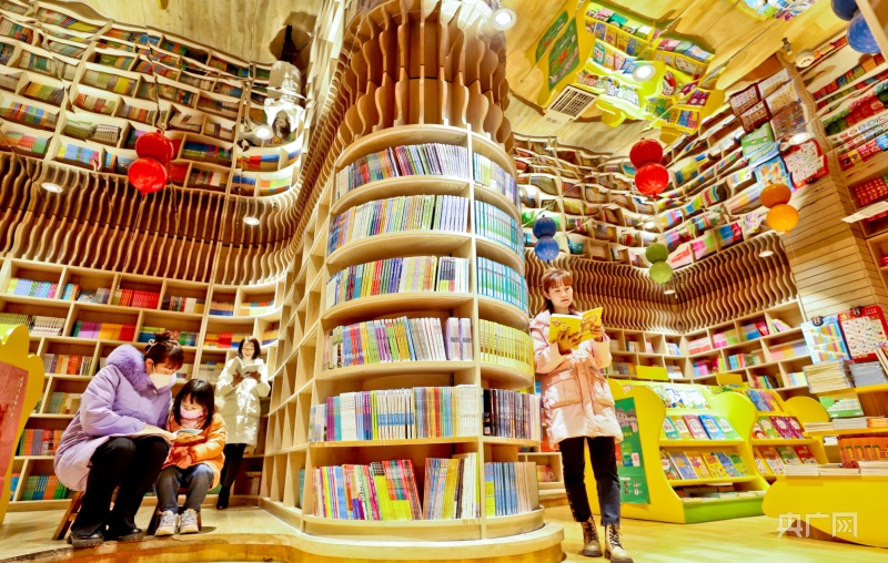 1月23日,甘肅省張掖市甘州區(qū)眾多市民帶著孩子走進(jìn)書城讀書。(央廣網(wǎng)發(fā) 王將 攝)