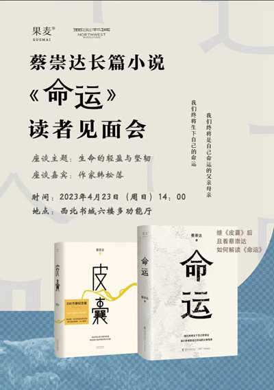 4月23日14點(diǎn),蔡崇達(dá)新書《命運(yùn)》簽售會(huì)將在蘭州西北書城舉行。