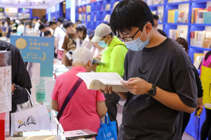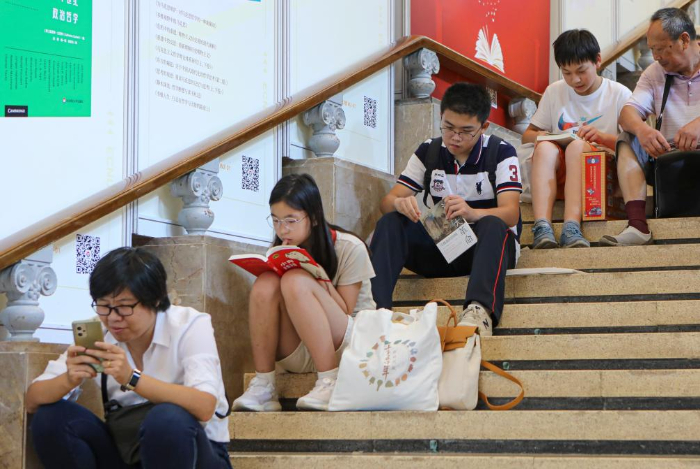 8月16日,讀者在2023上海書(shū)展現(xiàn)場(chǎng)閱讀。
