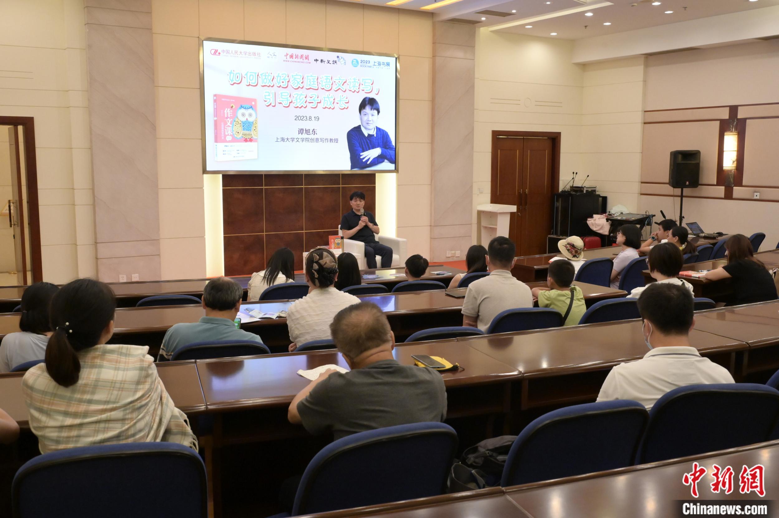 中新網8月22日電 8月19日晚,魯迅文學獎得主、上海大學文學院教授、博士生導師譚旭東攜新作《作文課:讓創(chuàng)意改變作文》,走進上海書展,暢談家庭語文教育。譚旭東以自己多年指導中小學語文教育的經歷與大家分享:家庭語文讀寫的培養(yǎng),對孩子的成長和語文的進步,都非常關鍵。