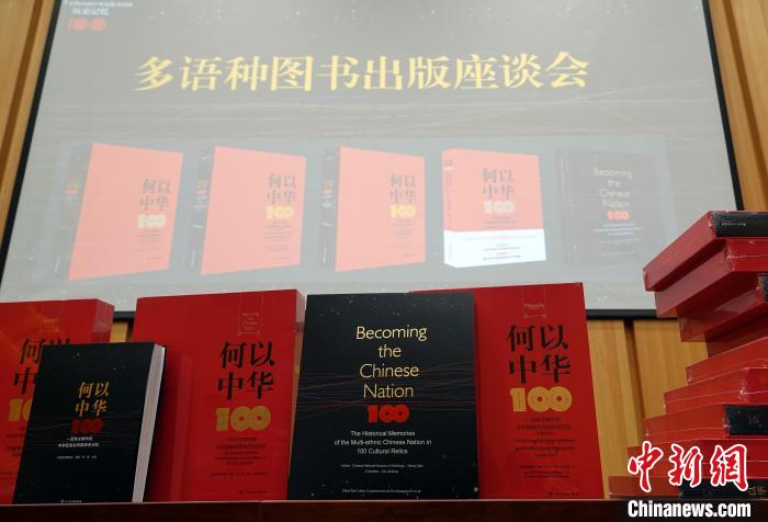 《何以中華》多語(yǔ)種圖書(shū)出版座談會(huì)在北京舉辦,現(xiàn)場(chǎng)展示的圖書(shū)。中新網(wǎng)記者孫自法攝