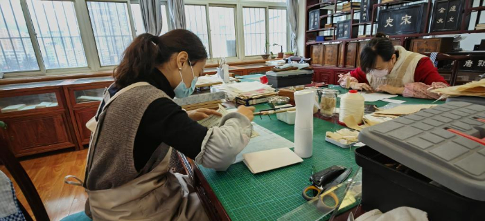 為了讓更多人了解古籍修復(fù)工作,天水市圖書館每年舉辦中華傳統(tǒng)曬書活動、書籍函套技藝培訓(xùn)等,李東暉和同事們帶領(lǐng)讀者感受雕版印刷技術(shù)、學(xué)習(xí)制作書籍函套等。
