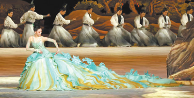 二〇二三年杭州亞運會開幕式“國風雅韻”篇服裝設計“水天碧”長裙,總設計師楚艷。