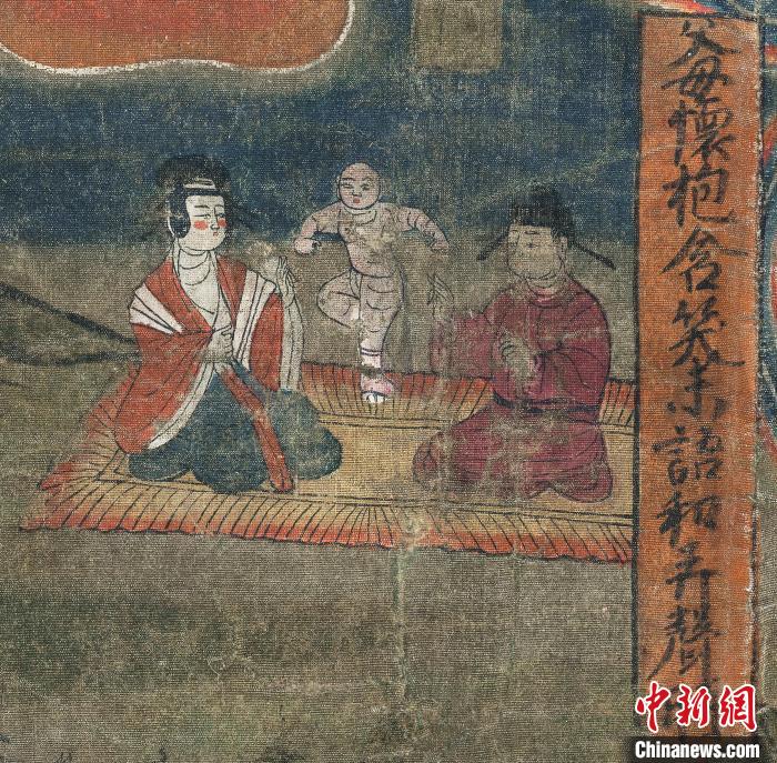 圖為“報(bào)父母恩重經(jīng)變絹畫”中的“父母懷抱含笑未語和弄聲時(shí)”的畫面。(資料圖)甘肅省博物館供圖