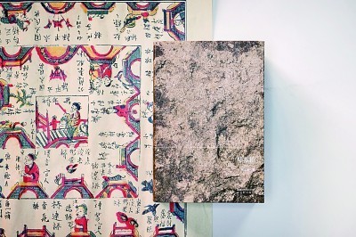 整本書在書口處還特別進行了雕刻,并采用噴繪工藝,強化石面凹凸不平的質感,讓讀者能夠觸摸書口的不同深度,豐富了觸覺上的感受。包裹書脊的紗布,經(jīng)過茶葉染色的特殊處理,呈現(xiàn)出雅致的淺褐色。