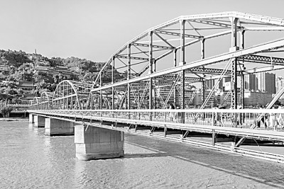 以百年時(shí)間看黃河,《黃河中國(guó)》彰顯黃河古文明之上崛起的現(xiàn)代文明。在書中我特意寫了三座百年黃河鐵橋,它們分別是蘭州黃河鐵橋、鄭州平漢鐵路黃河橋和濟(jì)南濼口黃河鐵路橋。一百年放置在歷史長(zhǎng)河里不算長(zhǎng),卻是一個(gè)較為合適的觀照近現(xiàn)代中國(guó)發(fā)展的時(shí)間點(diǎn)。從擺渡、繩渡到石橋、木橋、浮橋、鐵路橋、公路橋,橋梁建筑史的發(fā)展足以證明人類社會(huì)的進(jìn)步。黃河上最初修建鐵橋的歷史在晚清末年,正是中華民族處于內(nèi)憂外患之際,光緒二十六年(1900)清政府決定修建平漢黃河鐵路橋,這是黃河上的第一座鋼鐵建筑,然而在1938年抗戰(zhàn)烽火中,為阻擋日軍進(jìn)攻,被炸毀了,現(xiàn)在只剩下5孔橋墩。以5孔橋墩存在的黃河第一座鐵橋,象征著黃河上現(xiàn)代工業(yè)文明的興起與民族深深的精神創(chuàng)傷。如今80多年過去了,鄭州地段已經(jīng)修建了十余座黃河橋,每一座都很現(xiàn)代很漂亮。自新中國(guó)成立以來,黃河安瀾75年,從戰(zhàn)火紛飛到國(guó)泰民安,黃河是國(guó)家昌盛、民眾幸福的最好見證者。