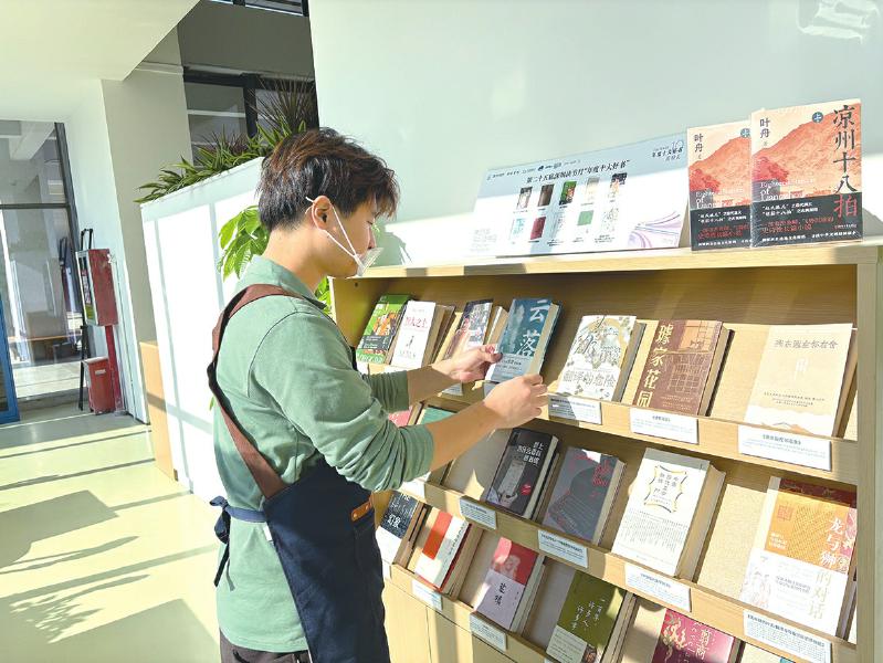 1月1日上午,深圳信息職業(yè)技術(shù)學(xué)院湖畔書吧店長蔡錦元在整理書架、碼放圖書。