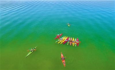 皮劃艇隊(duì)運(yùn)動(dòng)員在劉家峽水庫(kù)國(guó)家亞高原水上訓(xùn)練基地訓(xùn)練