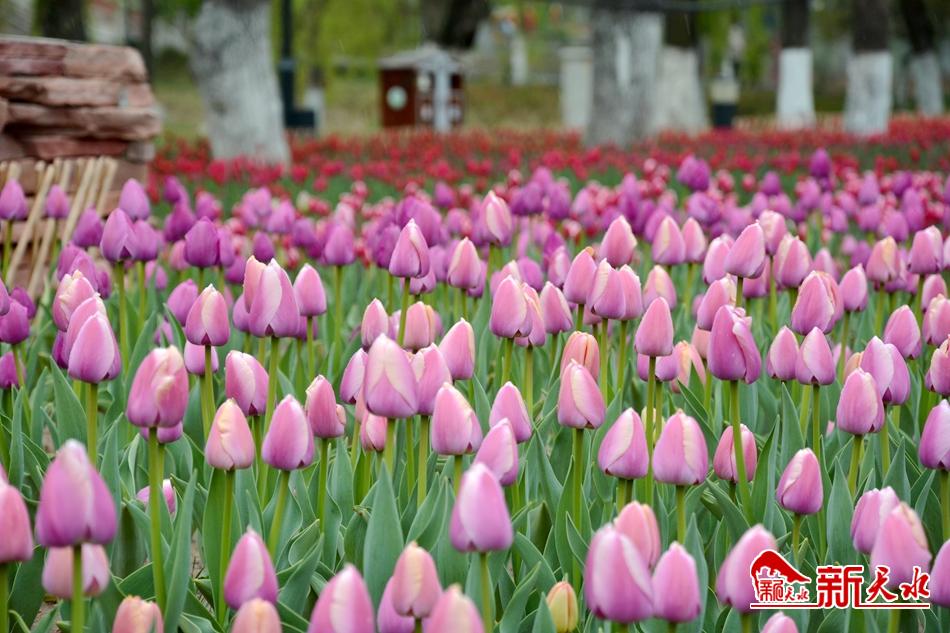 在經(jīng)歷了一個(gè)漫長的嚴(yán)冬之后,馬跑泉公園的25萬余株郁金香和5萬余盆各類時(shí)令鮮花在麥積大地上郁郁蔥蔥的綻放著。