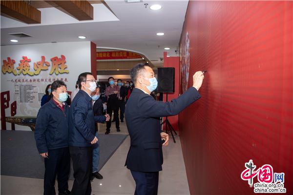 2020年4月17日上午,由中共重慶市九龍坡區(qū)委宣傳部、重慶市九龍坡區(qū)文化和旅游發(fā)展委員會(huì)、重慶市九龍坡區(qū)衛(wèi)生健康委員會(huì)、重慶市九龍坡區(qū)地方志編撰中心聯(lián)合主辦,重慶巴人博物館、重慶市九龍坡區(qū)非物質(zhì)文化遺產(chǎn)保護(hù)中心承辦的“戰(zhàn)疫必勝——九龍坡區(qū)抗擊新冠肺炎疫情專題展”在重慶巴人博物館正式開展,市文化和旅游發(fā)展委員會(huì)副主任幸軍、九龍坡區(qū)委常委、宣傳部部長(zhǎng)顏朝華、九龍坡區(qū)政府副區(qū)長(zhǎng)趙文明、市文化和旅游發(fā)展委員會(huì)非物質(zhì)文化遺產(chǎn)處處長(zhǎng)嚴(yán)小紅、文物保護(hù)與考古處處長(zhǎng)熊子華、博物館與社會(huì)文物處處長(zhǎng)王發(fā)榮出席開展儀式。