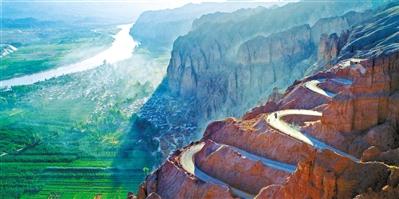 二十二道彎:落差206米的盤山路,近180度的彎道22個(gè)坡陡彎急,路旁巍峨石峰視線所及是黃河曲流、綠洲農(nóng)莊,俯瞰是最震撼動(dòng)人的角度。