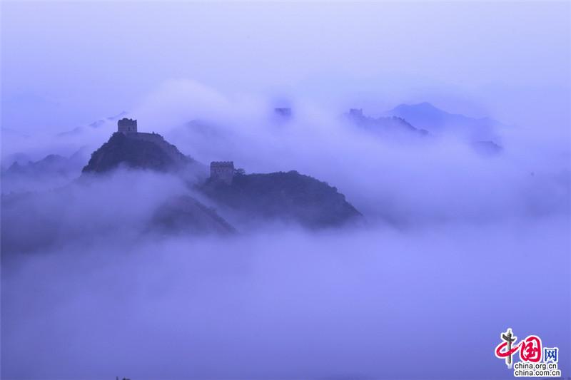 夏季,金山嶺長城開啟了云海模式,出現(xiàn)云霧天氣多達十幾次,美輪美奐,如同仙境。