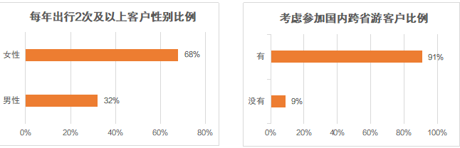 男女比例三七開,九成以上客戶期待國內(nèi)跨省游
