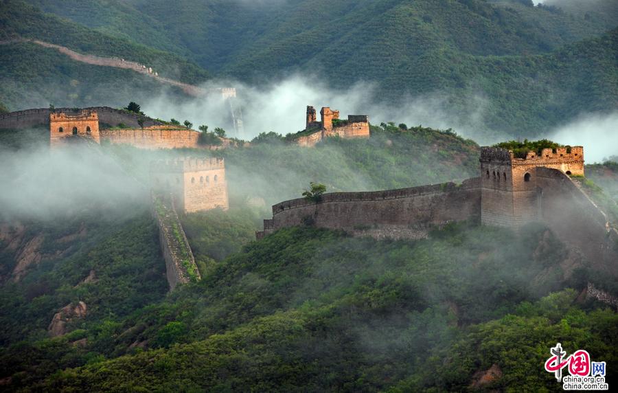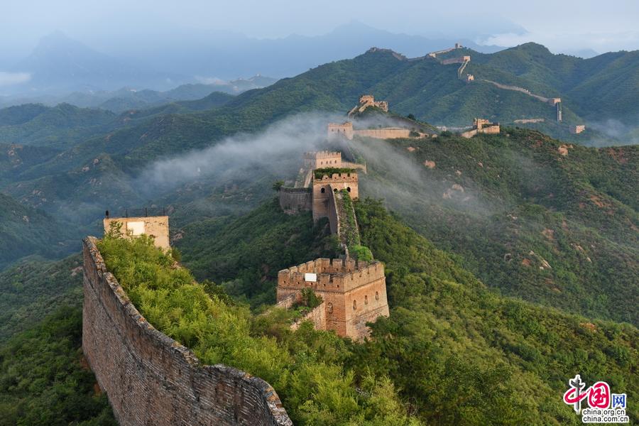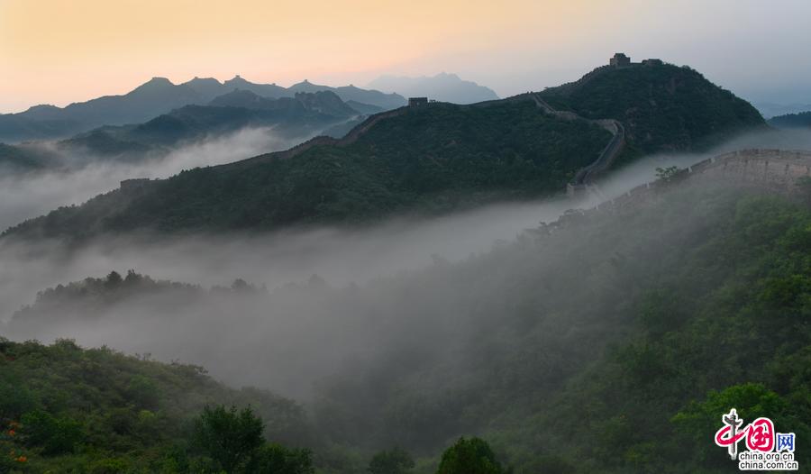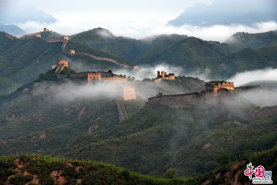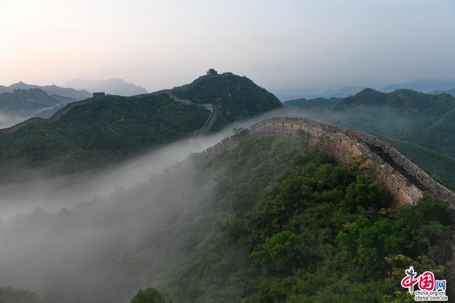 進入夏季,金山嶺長城出現(xiàn)云霧天氣多達二十多次,美輪美奐,令人神往。