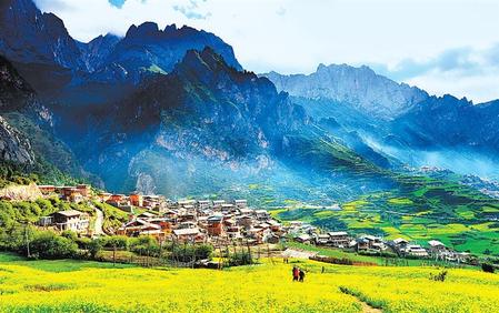在銀裝素裹的雪山圍繞之中,是保留著最原生態(tài)的藏族村落。全木質(zhì)的房屋、圍欄中的牦牛綿羊、從田地返回的熱情藏民、傍晚時(shí)山谷間繚繞的炊煙……全都是現(xiàn)代城市早就失落的質(zhì)樸之美。