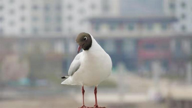 紅嘴鷗,俗稱水鴿子,體形和毛色都與鴿子相似,嘴和腳皆呈紅色,身體大部分的羽毛是白色,尾羽黑色。紅嘴鷗喜集群,在世界的許多沿海港口、湖泊都可見到,多數(shù)在中國東部及北緯32度以南湖泊、河流及沿海地帶越冬。