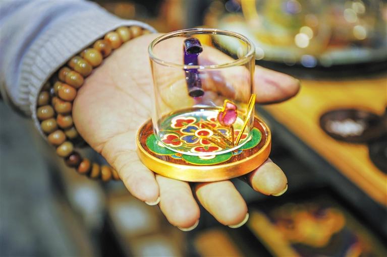環(huán)顧李海明琺瑯藝術(shù)館,工藝的極致與色彩的沉淀,令人震撼,在這位50多歲的中年男子的腦海里,總有新鮮的點子涌現(xiàn)。他告訴記者,他正在和一家古箏廠家合作,將他的琺瑯藝術(shù)運用于古箏這一傳統(tǒng)樂器,讓傳統(tǒng)文化融入當代生活。