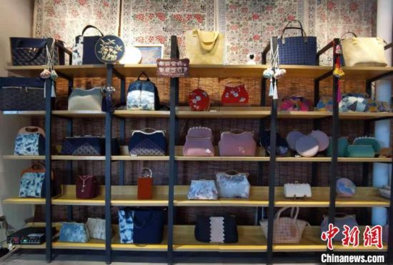 圖為祁輝純手工刺繡制作的時(shí)尚包展示。 張婧 攝