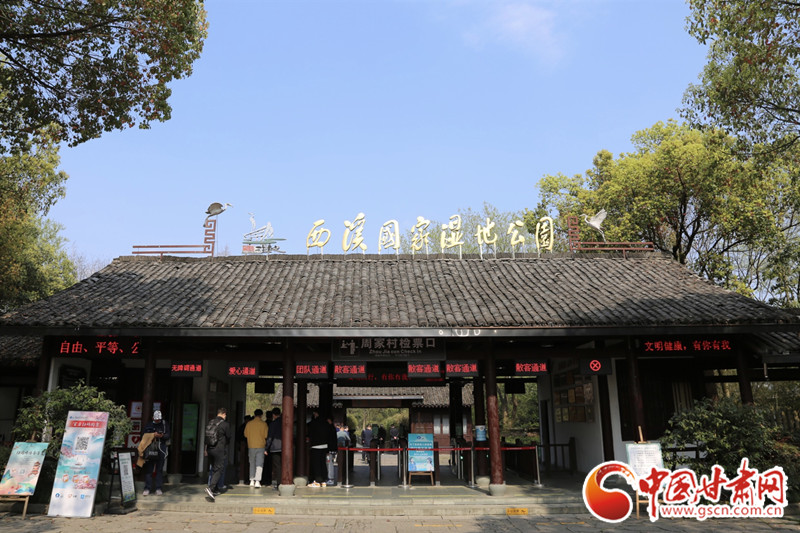 游客進(jìn)入杭州西溪國(guó)家濕地公園游覽