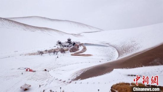 2月17日,甘肅敦煌迎來(lái)降雪天氣,大漠山川被皚皚白雪覆蓋,像一幅幅清秀淡雅的水墨山水畫(huà)。敦煌著名風(fēng)景區(qū)——鳴沙山月牙泉景區(qū)吸引游客前來(lái)觀賞難得一見(jiàn)的大漠雪景。這次降雪的特點(diǎn)是降雪量大,但氣溫并不是很低,游人盡情體驗(yàn)“沙雪交融”的絲路盛景。(王斌銀 張曉亮)