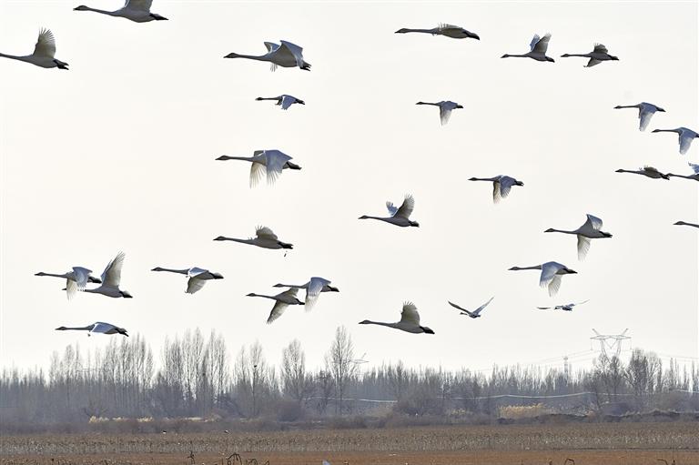 中國甘肅網(wǎng)3月24日訊 據(jù)蘭州晚報報道(通訊員 鄭耀德 記者 雒煥素 攝)3月22日,在張掖黑河濕地國家級自然保護(hù)區(qū)臨澤縣鮑家湖濕地內(nèi),大群的野生大天鵝、赤麻鴨、綠頭鴨、灰雁等北遷候鳥嬉戲覓食,黑河濕地迎來了春季候鳥遷徙高峰期。