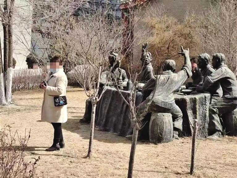 記者在水車博覽園看到,幾名游客翻越圍欄徑自從剛剛吐露新芽的草地上穿過,有的游客在雕塑上攀爬、玩耍,甚至坐臥在雕塑上拍照,這些行為不僅對(duì)園內(nèi)設(shè)施造成了損壞,也對(duì)個(gè)人和城市造成了不好的影響。