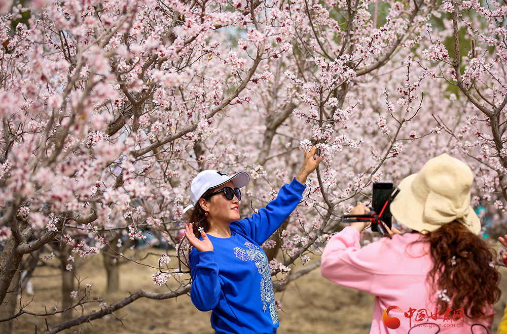 在肅州區(qū)金佛寺鎮(zhèn)的觀山口連片杏林看到,漫山遍野的杏花粉如胭脂,白如脂玉,格外嬌艷,把戈壁深處的小山村裝點(diǎn)得美若仙境,吸引了眾多周邊的市民游客前來(lái)賞花踏青。