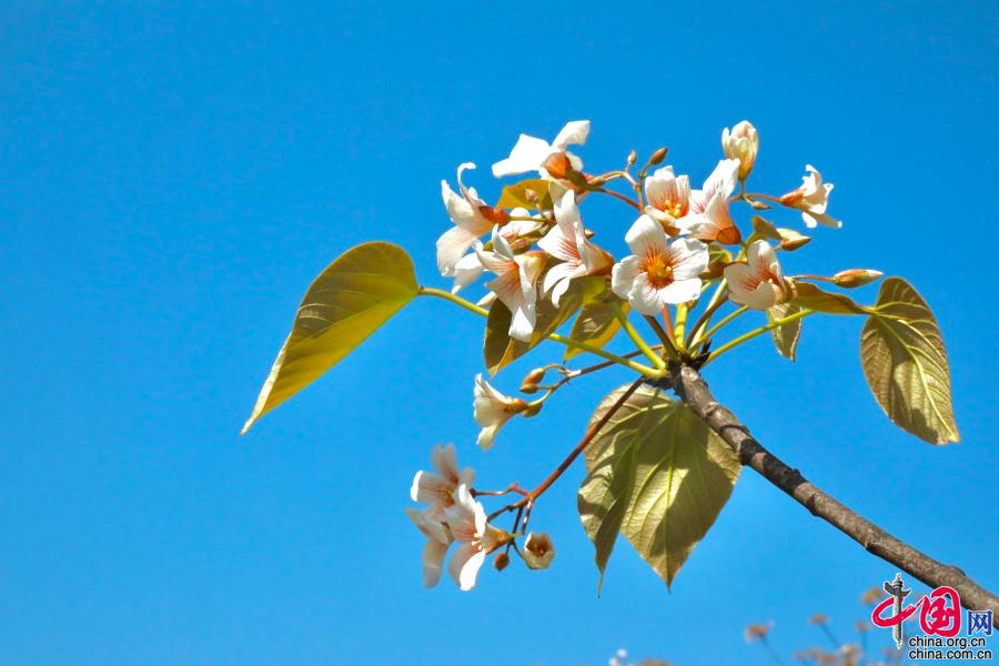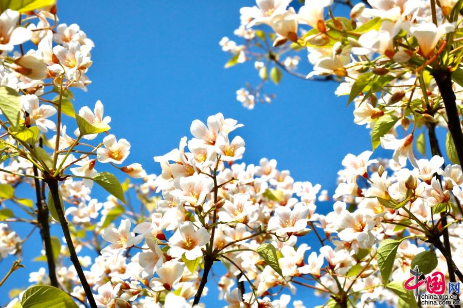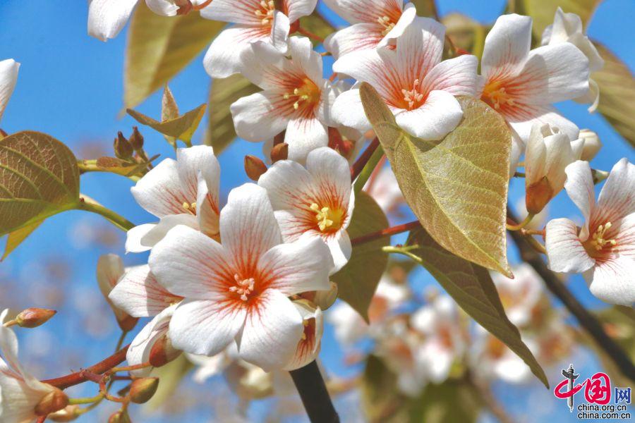 據(jù)了解,油桐的花期較短,僅半個(gè)月左右。每年四月中旬,便能看到密集成林的油桐白花簇簇,整個(gè)山頭全是花朵的世界。隨著陣陣清風(fēng),空中飄起雪白的花雨,藍(lán)天白云,落英繽紛,清香馥郁,飄逸山外。