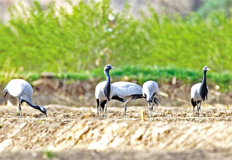 4月16日,在蘭州市永登縣境內的莊浪河流域,蘭州野生動物保護協(xié)會會員邊忠建在永登玉山村拍到9只蓑羽鶴,蓑羽鶴是國家二級重點野生保護動物,也是該物種首次在當地出現。
