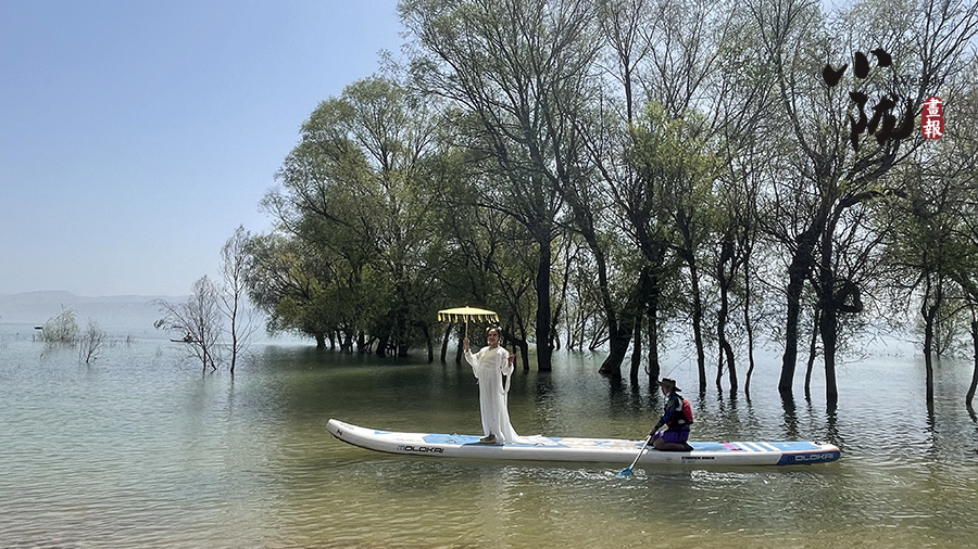 春日里,炳靈湖上鶴舞鷗翔,風如絲,水如綢,蕩舟其中,正是一幅“舟行碧波上,人在畫中游”的美麗畫卷。