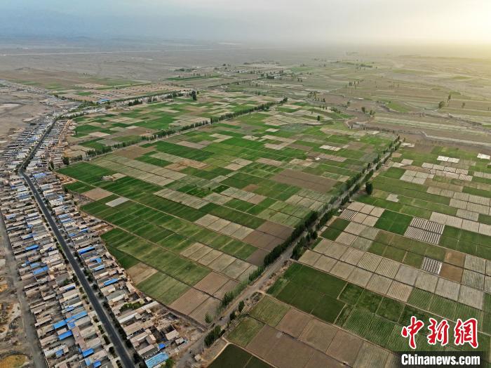 夏日時節(jié),甘肅省張掖市高臺縣駱駝城鎮(zhèn)紅新村和梧桐村的田野間,農(nóng)舍青青?!∴嵰隆z