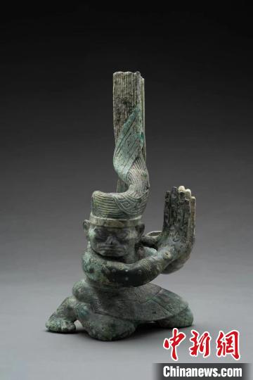 第一件扭頭跪坐人像出土?xí)r臉部布滿了銅銹,加之盤發(fā)沖天的造型,考古工作者并未意識到這是一件青銅人像。但這一疑慮很快隨著第二件扭頭跪坐人像的出土而被打破。
